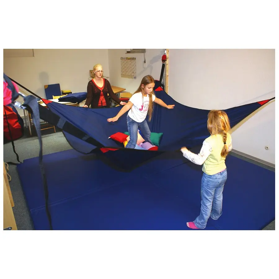 Balanseduk som kan spennes opp på tvers i rommet. Duken er et virkningsfullt redskap for støtte av vestibulær og taktil sans samt trening av balanse og muskelstyrke. Gyngeduken leveres med 4 integrerte opphengstau à 250cm og 8 karabinkroker. Den praktiske duken er ideell for barnehager eller til terapeutisk bruk.