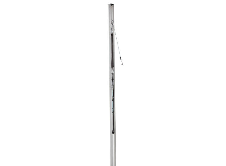 Volleyballstolper med stabil alu-spesialprofil, diameter 83 mm, sølv eloksert. Med dette anlegget er det mulig å justere nettet trinnløst i stram tilstand fra 1,55 til 2,50 m. Fordelen med trinsestramming: enkel og trygg i bruk, ingen vridning av tauet og heller ingen slitedeler som sveiv og spindel.