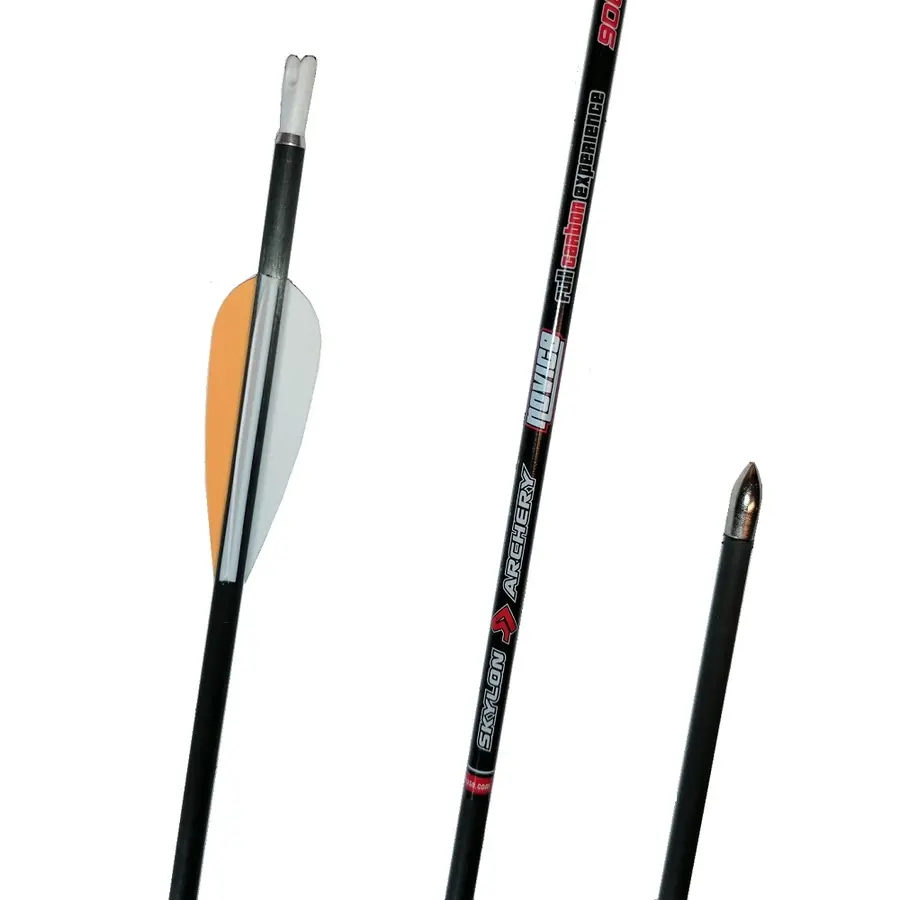 Karbonpil med plastvanes til lette og medium lette buer Spine 900 (4,2mm). Komplett med push-in nock, vanes og spiss.