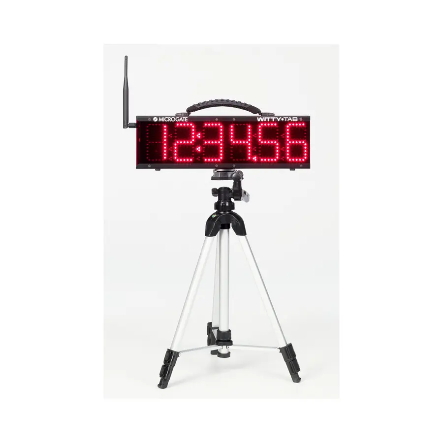 Witty TAB er det ideelle valget for alle som leter etter en multikapabel, transportabel og brukervennlig tidtagerskjerm som i tillegg er lett i vekt. Den er utstyrt med LED-punktmatrise som viser 6 numeriske sifre med 7 segmenter hver (10 x 5 lysdioder) og en sensor som tillater automatisk justering av lysstyrkenivået for å tilpasse lysforholdene i omgivelsene. Lysstyrken kan også justeres manuelt. Witty TAB har en intern klokke og leveres komplett med en radiomottaker som kan kommunisere med Witty fotoceller.