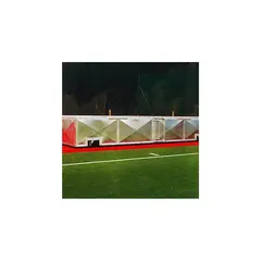 Lukket garasje i aluminium til stavsprangmatte. Oppbevaringshus som beskytter matten mot vær og hærverk, og gjør at høydehoppmatten kan ligge på banen. Det anbefales likevel regntrekk da garasjen ikke er vanntett men vannavvisende.