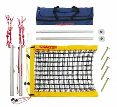 SunVolley Plus- Sandvolleyball sett til profesjonelle utøvere med oppbevaringsbag. Sandvolleyball settet er av høy kvalitet og er egnet for å sette opp på gress. Settet inneholder sandvolleyballnett på 8,5 meter, stolper med fester og en praktisk oppbevaringsbag.