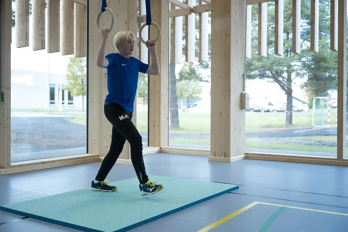 • Videregående skoler og større idrettshaller har ofte egne treningsrom med styrke- og kondisjonsutstyr. Her er kravene til kvalitet og robusthet ekstra høye. Samtidig ser vi at lekbasert aktivitet fortsatt har en viktig plass også for eldre elever.