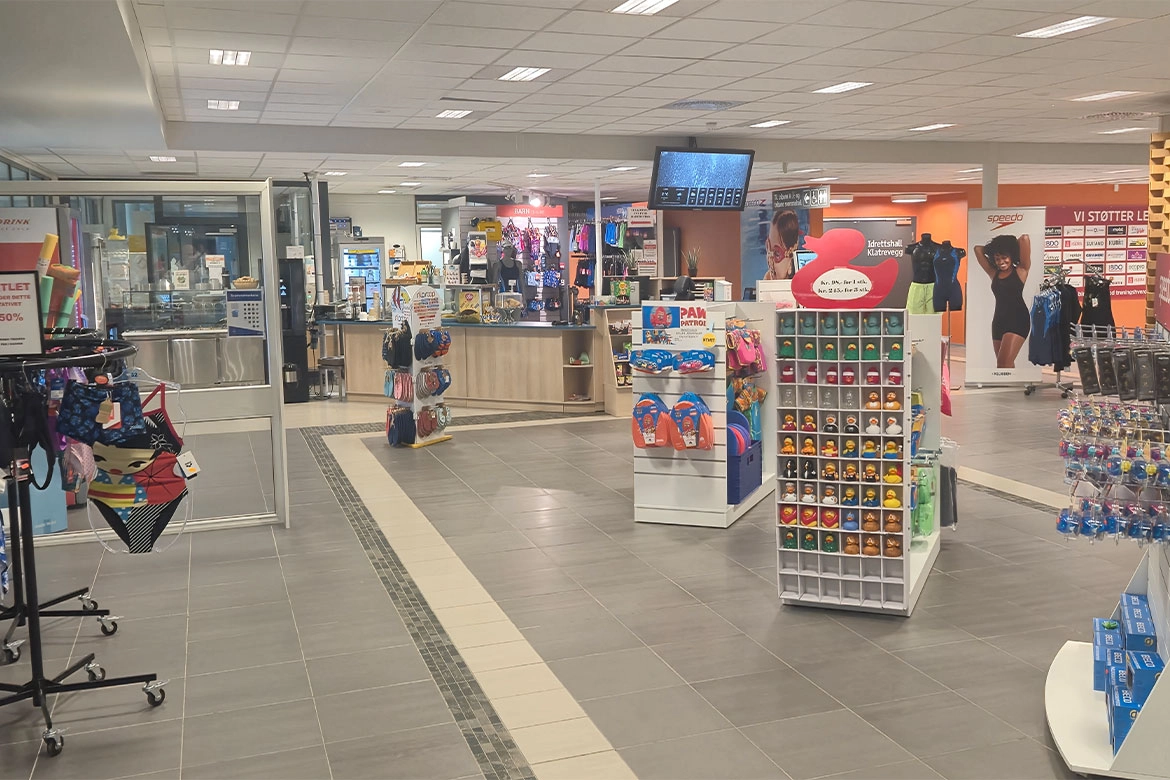 En svømmehallsbutikk har ofte liten plass, høy trafikk i korte tidsrom og kunder som er på vei til eller fra aktivitet. Innredningen må derfor gjøre det enkelt, raskt og intuitivt å finne det man trenger. God innredning handler ikke bare om estetikk, men om å styre kundestrøm, øke tilgjengeligheten og sikre at de viktigste produktene alltid er synlige.
